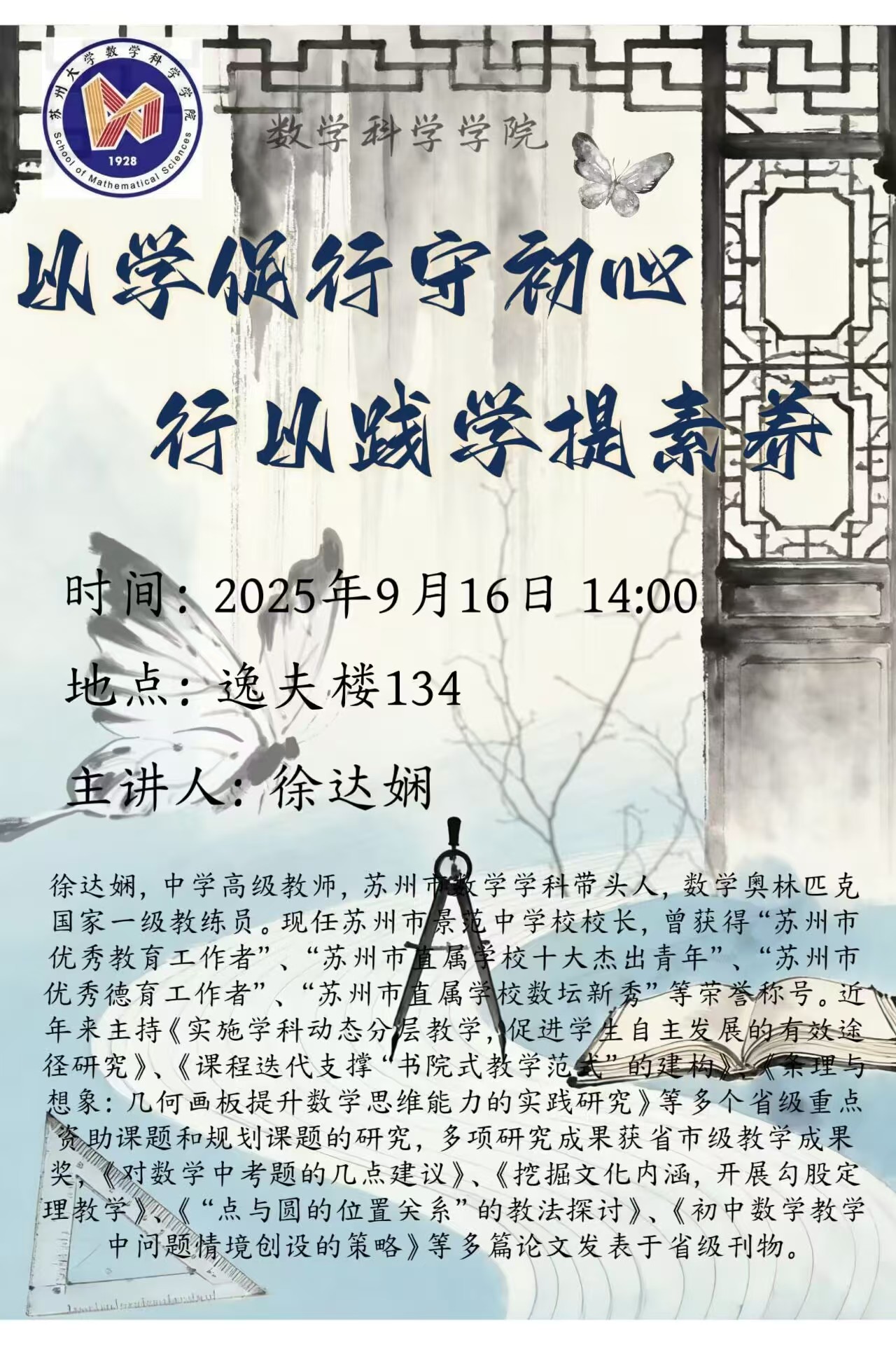 数学科学学院讲座:以学促行守初心 行以践学提素养