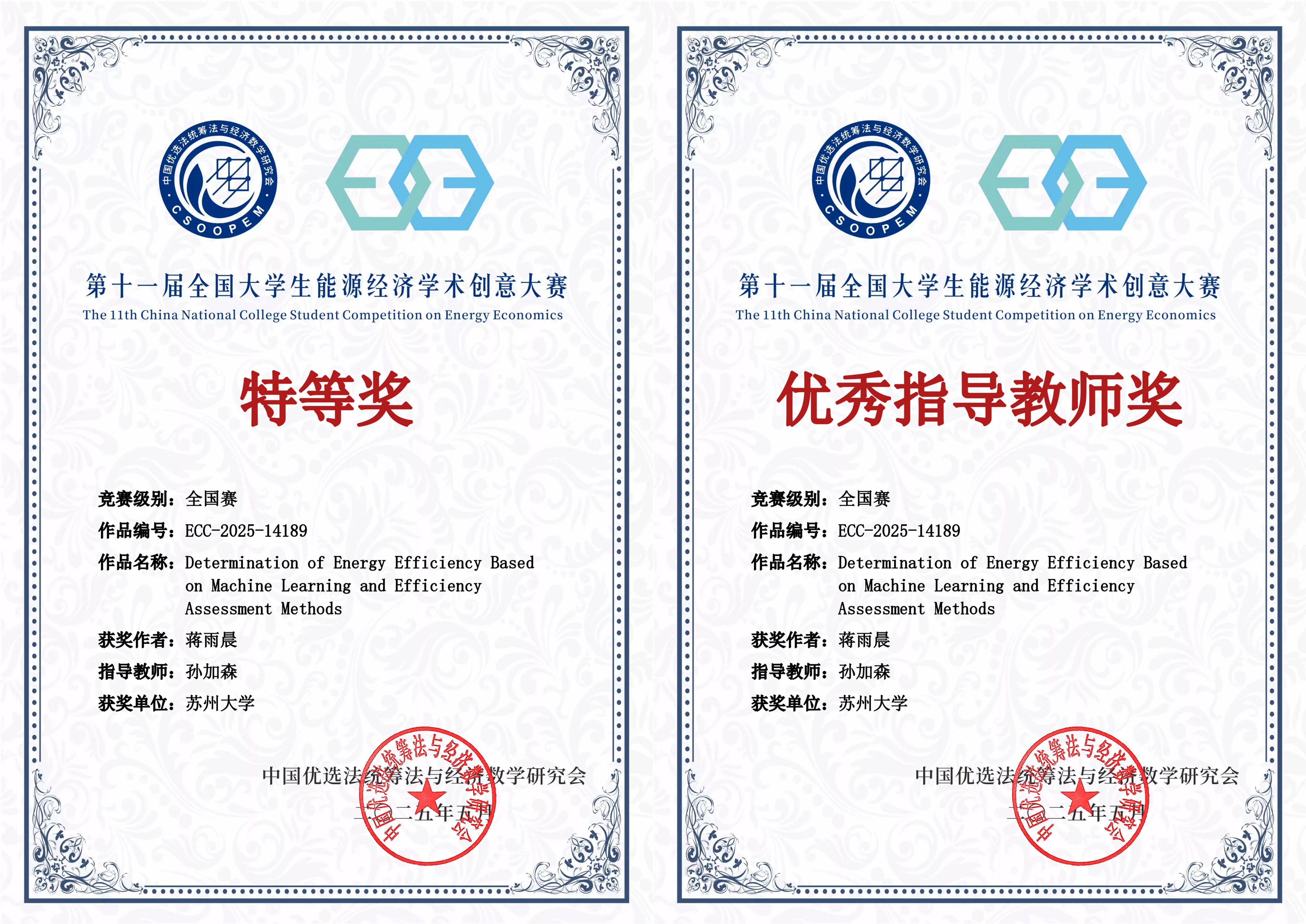 5月24日至25日,由中国优选法统筹法与经济数学研究会主办的第十一届全国大学生能源经济学术创意大赛总决赛落下帷幕。本次大赛中,MK网(中国)商学院蒋雨晨同学凭借其作品《Determination of Energy Efficiency Based on Machine Learning and Efficiency Assessment Methods》,荣获全国总决赛研究生组特等奖。指导老师孙加森教授荣获“优秀指导教师奖”。