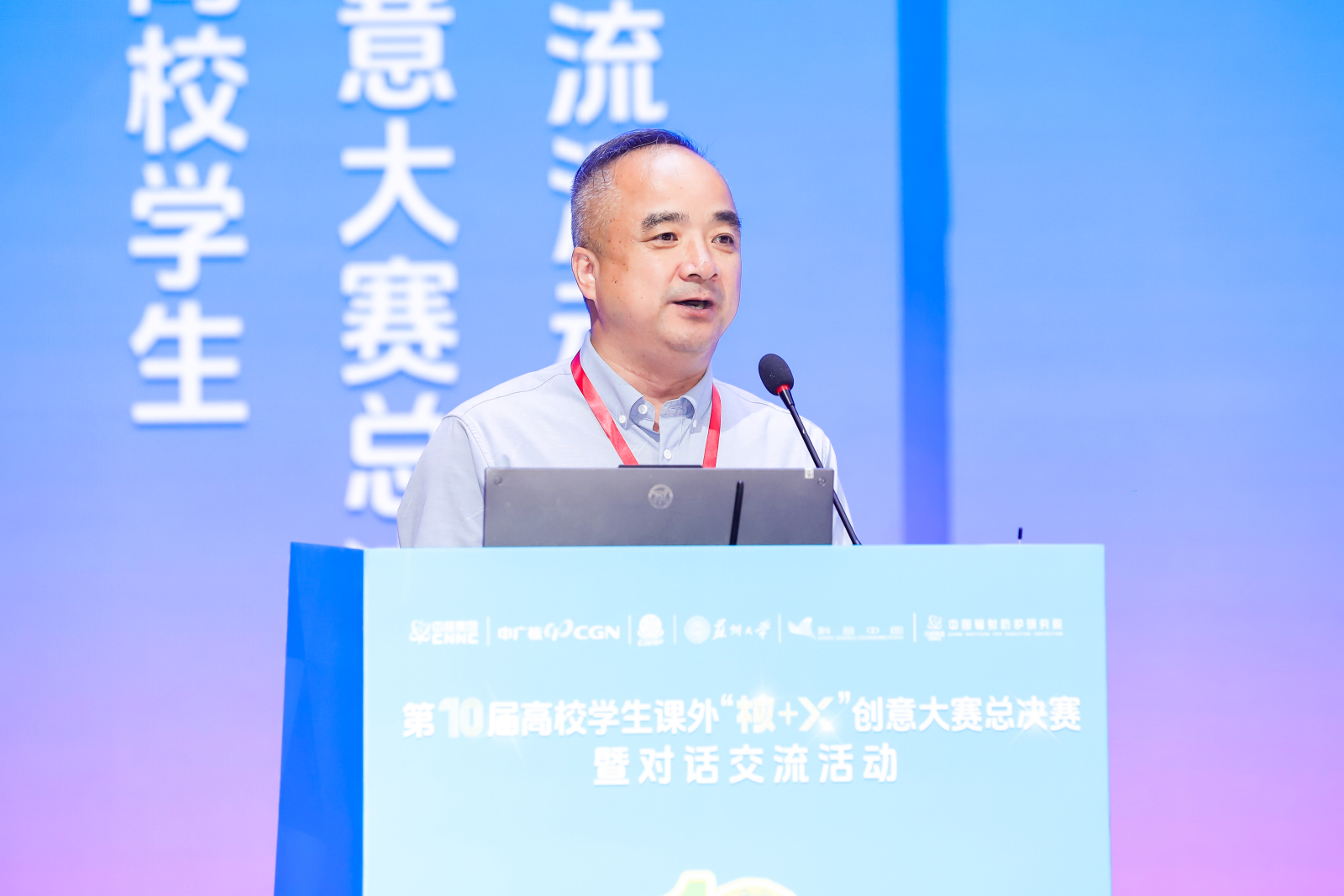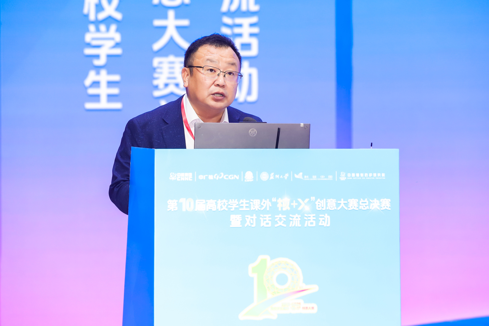 黄超指出,今年是核工业创建70周年,老一辈创业者铸就了“两弹一艇”的历史丰碑,从打破核垄断到守护民族尊严,从和平利用核能到发展清洁能源助力“双碳”目标,核工业始终与国家命运紧密相连。中广核高度关注青年群体创新创效工作,近年来与多所高校搭建了创新创效合作对接平台,希望同学们在“核+X”创意大赛的舞台上展示才华,树立强国报国情怀,将个人理想与国家强盛、民族复兴紧密相连,在服务国家发展大局中实现个人价值。