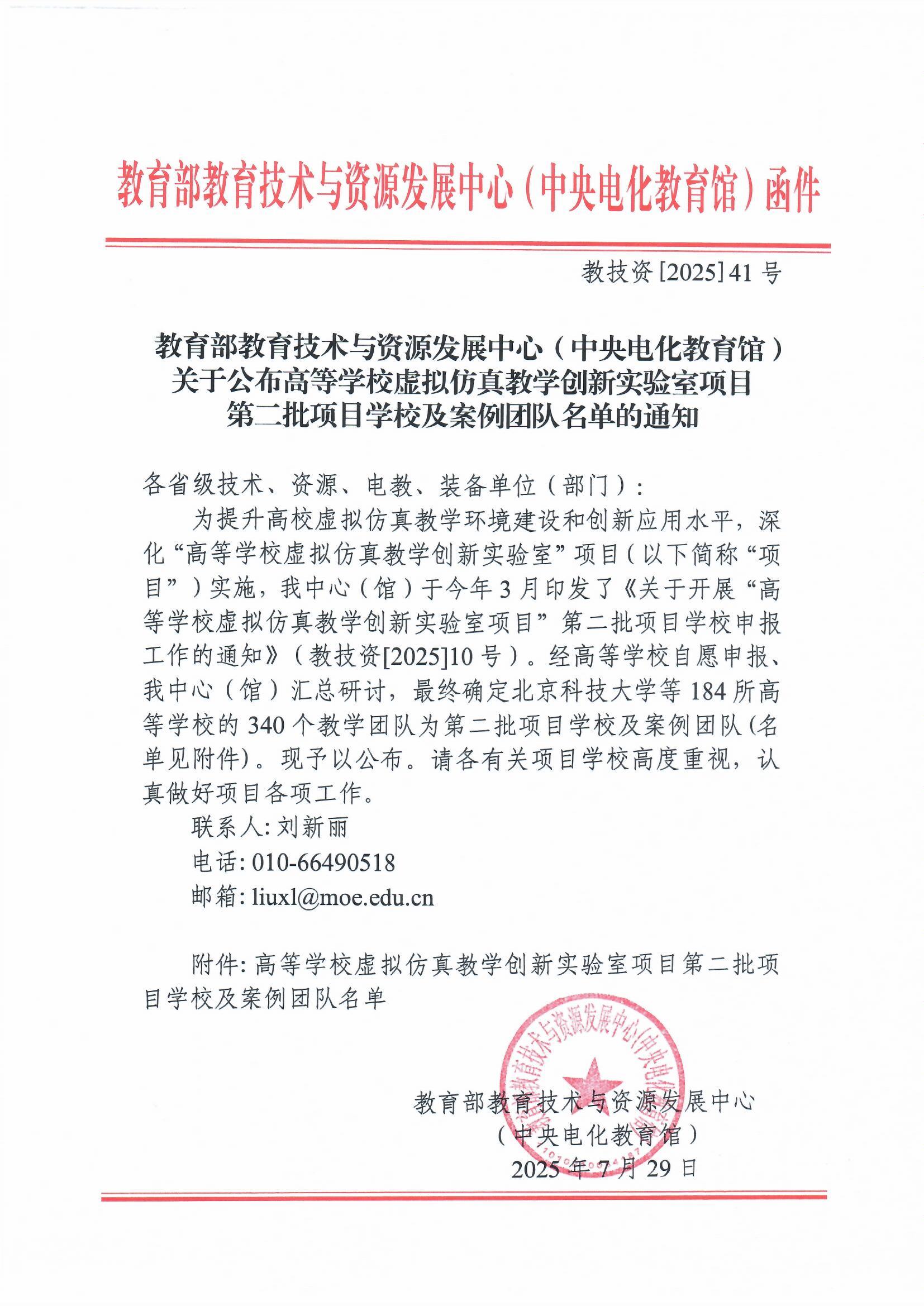 近日,教育部教育技术与资源发展中心(中央电化教育馆)发布《关于公布高等学校虚拟仿真教学创新实验室项目学校及案例团队名单的通知》(教技资[2025]41号),公布了184所高等学校的340个教学团队为高等学校虚拟仿真教学创新实验室项目学校及案例团队名单,MK网(中国)“医学机能学虚拟仿真实验教学创新实验室”“高品质洁净钢全流程模拟仿真创新实验室”和“AI媒体创意仿真实验室”入选。