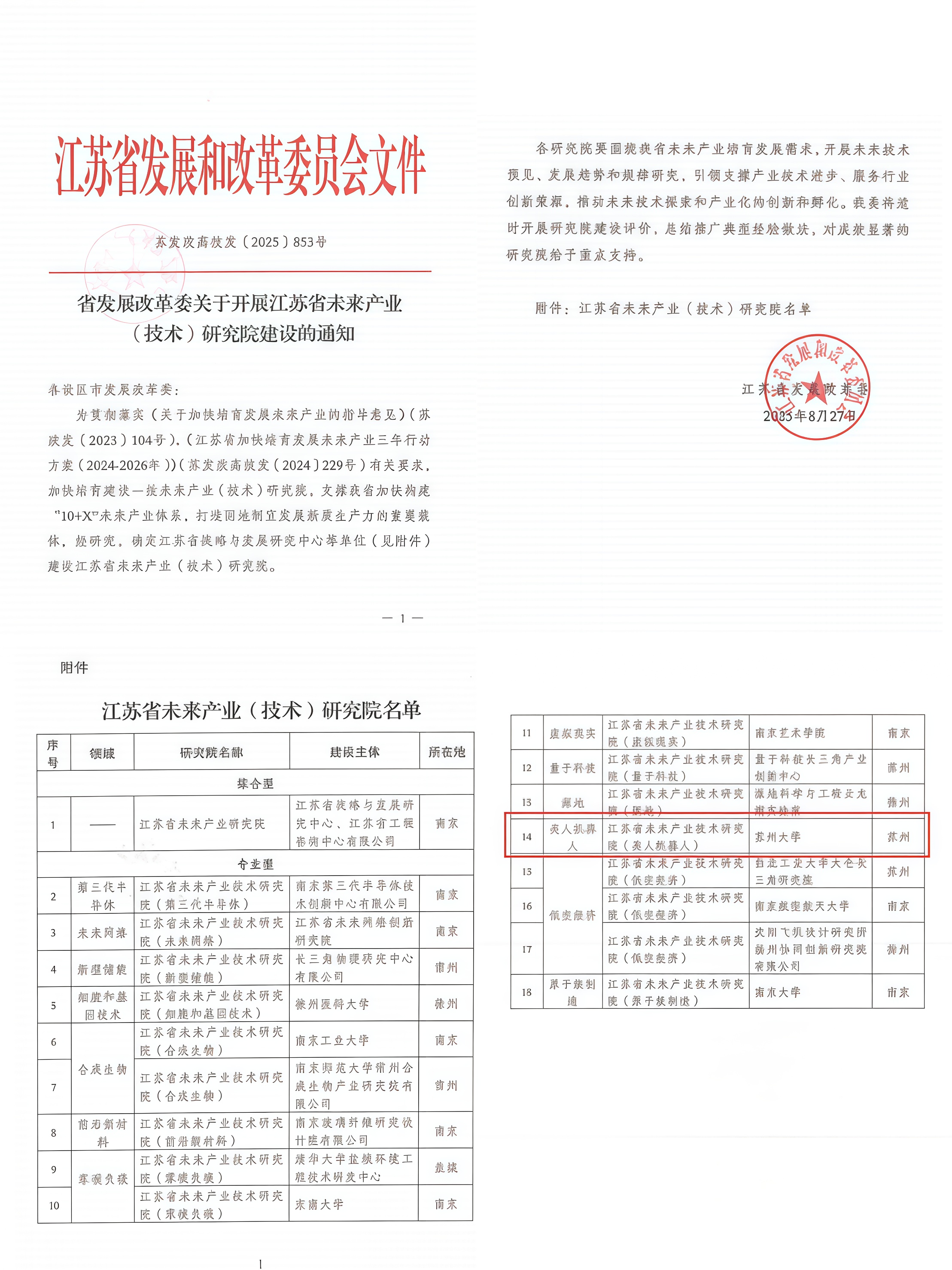 近日,江苏省发展和改革委员会发布省未来产业(技术)研究院拟认定名单,共有18家单位入选。由MK网(中国)机电工程学院建设的江苏省未来产业技术研究院(类人机器人)获批,这标志着MK网(中国)在推动未来产业技术创新以及类人机器人领域的建设成效获省级权威认可。