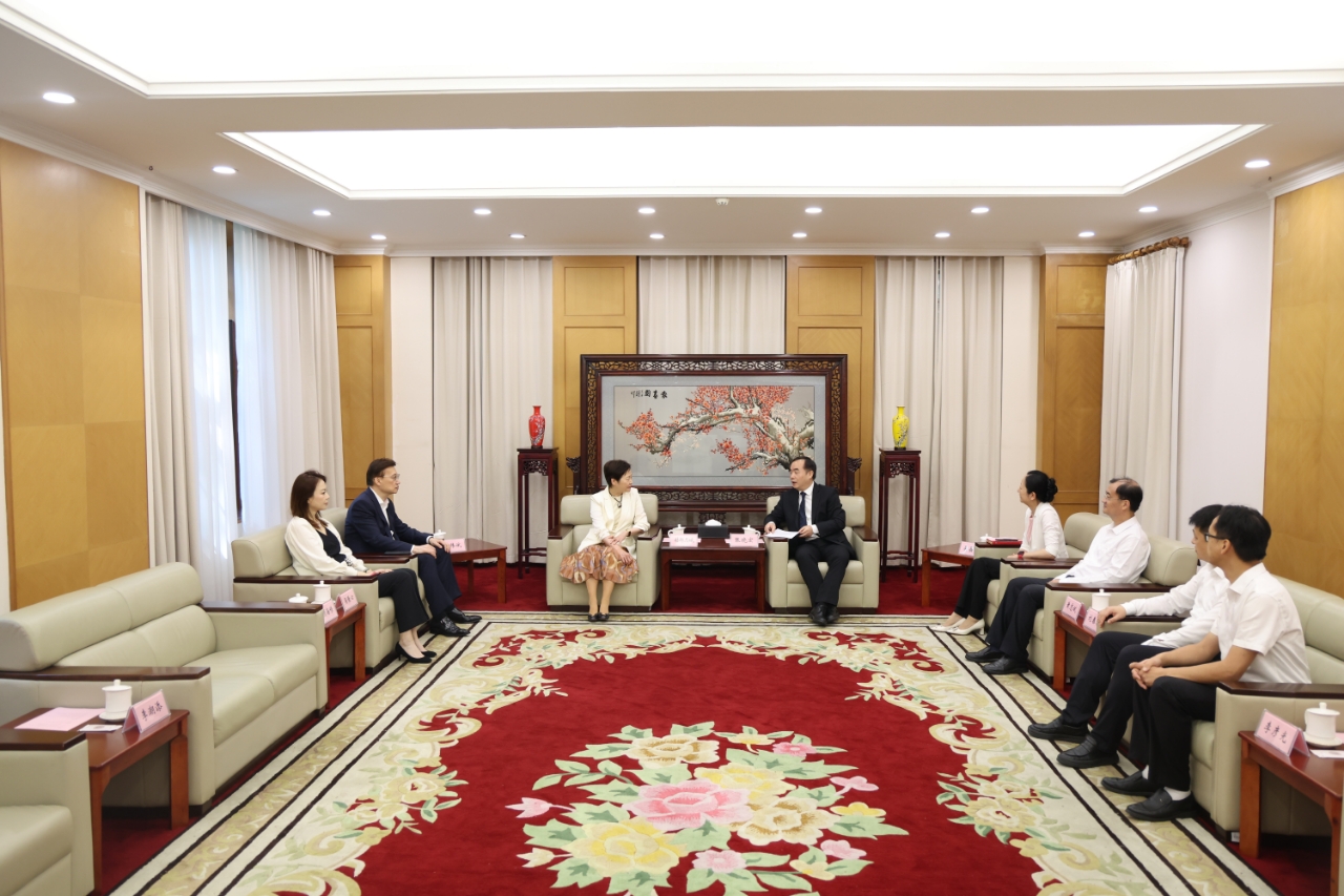 5月26日,香港特别行政区第五任行政长官林郑月娥女士一行到访MK网(中国)。校党委书记张晓宏、副校长吴嘉炜在红楼会议中心会见来宾。省政协常委、省香港商会会长、香港南京总会会长、香港科技教育文化学会会长施伟斌,省香港商会副秘书长项海嵘及MK网(中国)相关职能部门负责人陪同会见。