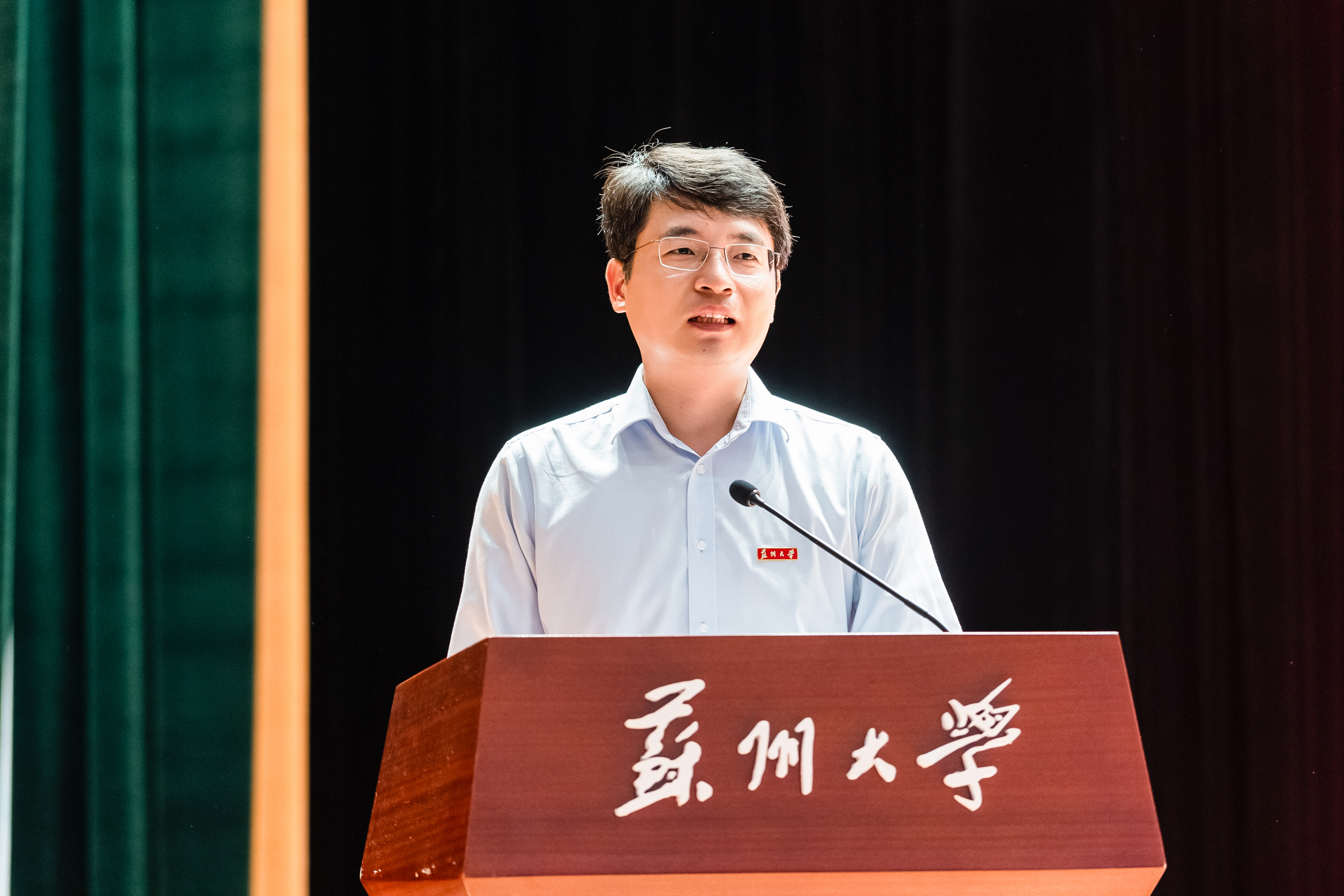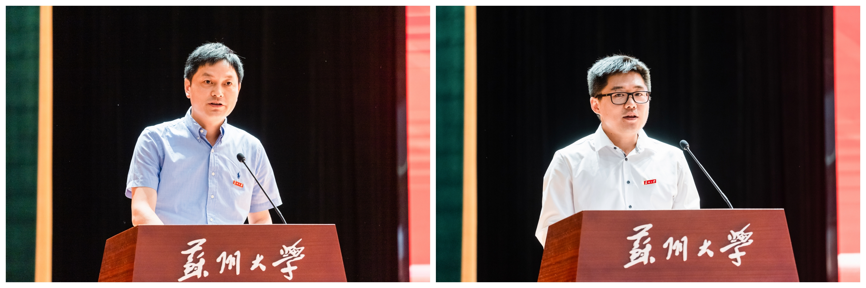 物理科学与技术学院党委书记赵承良代表资深教师发言,他围绕“感恩、情怀、融合”三个关键词,分享了从教十六年的心路历程和切身感悟,希望全体新教师常怀感恩之心,坚守教育情怀,勇于融合发展,在人才强校、服务地方和国际化战略中找到自己的定位与价值。材料与化学化工学部教授盛金宇代表新教师发言,号召全体新教师树立“躬耕教坛,强国有我”的志向与抱负,自觉将人才培养、教学科研工作与服务国家战略、服务地方经济社会发展融合起来,以高度的责任心和荣誉感,潜心立德树人,努力科研报国。