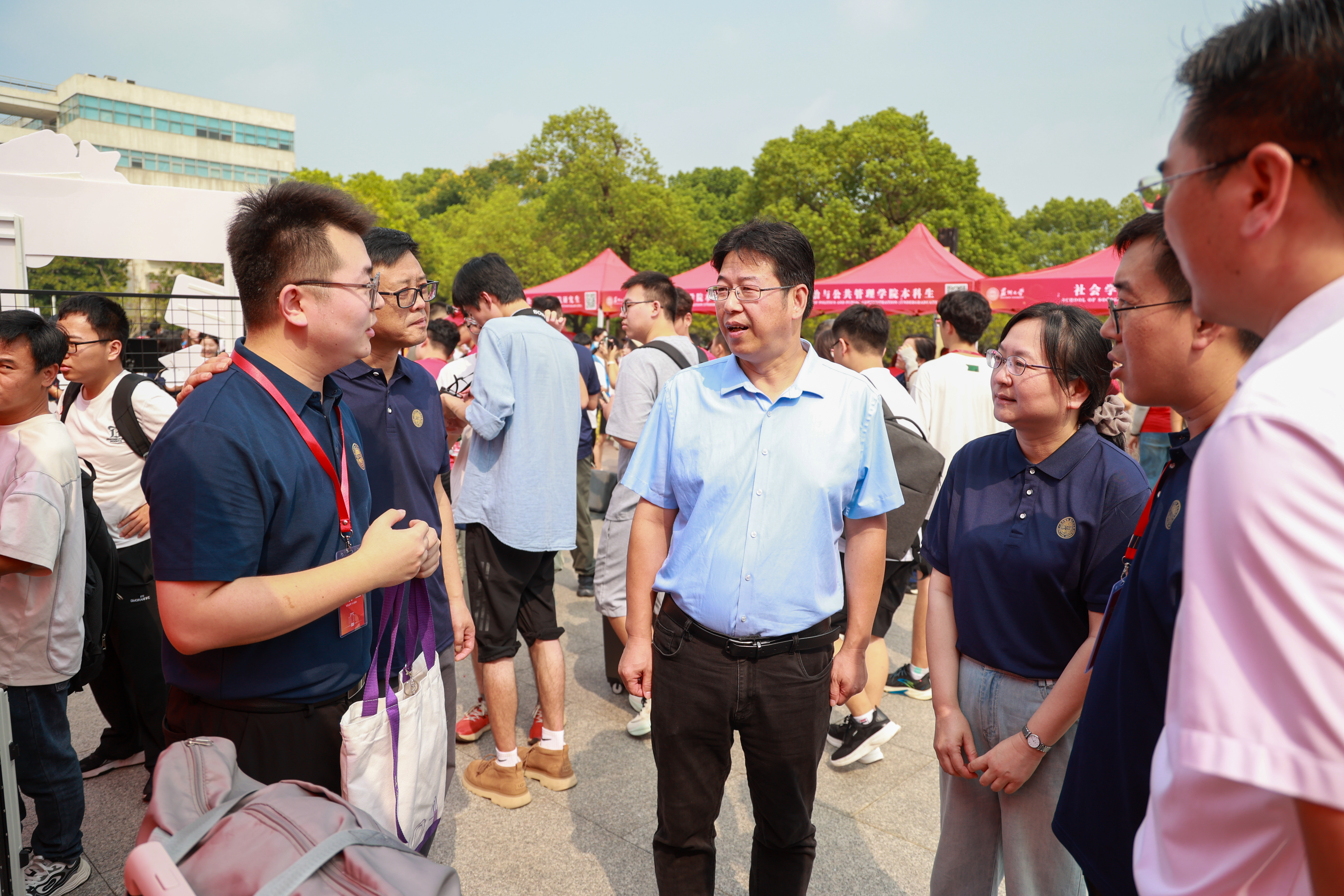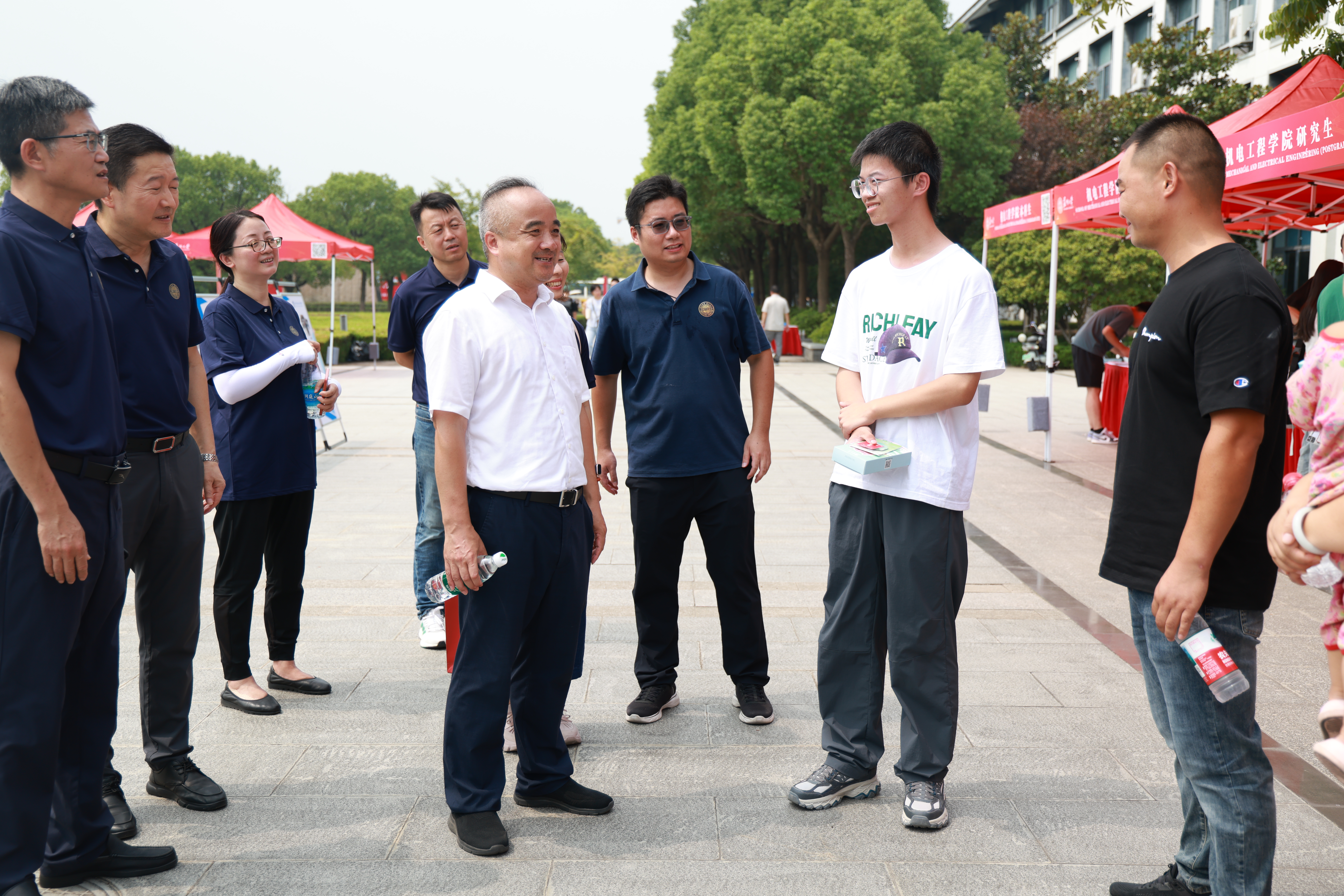 校领导沈明荣、姚建林、查佐明、王云杰来到迎新现场,详细了解新生报到情况及各项迎新保障工作,并鼓励新生积极主动融入校园生活,敢想敢做、勇于创新,努力绘就精彩的青春篇章。