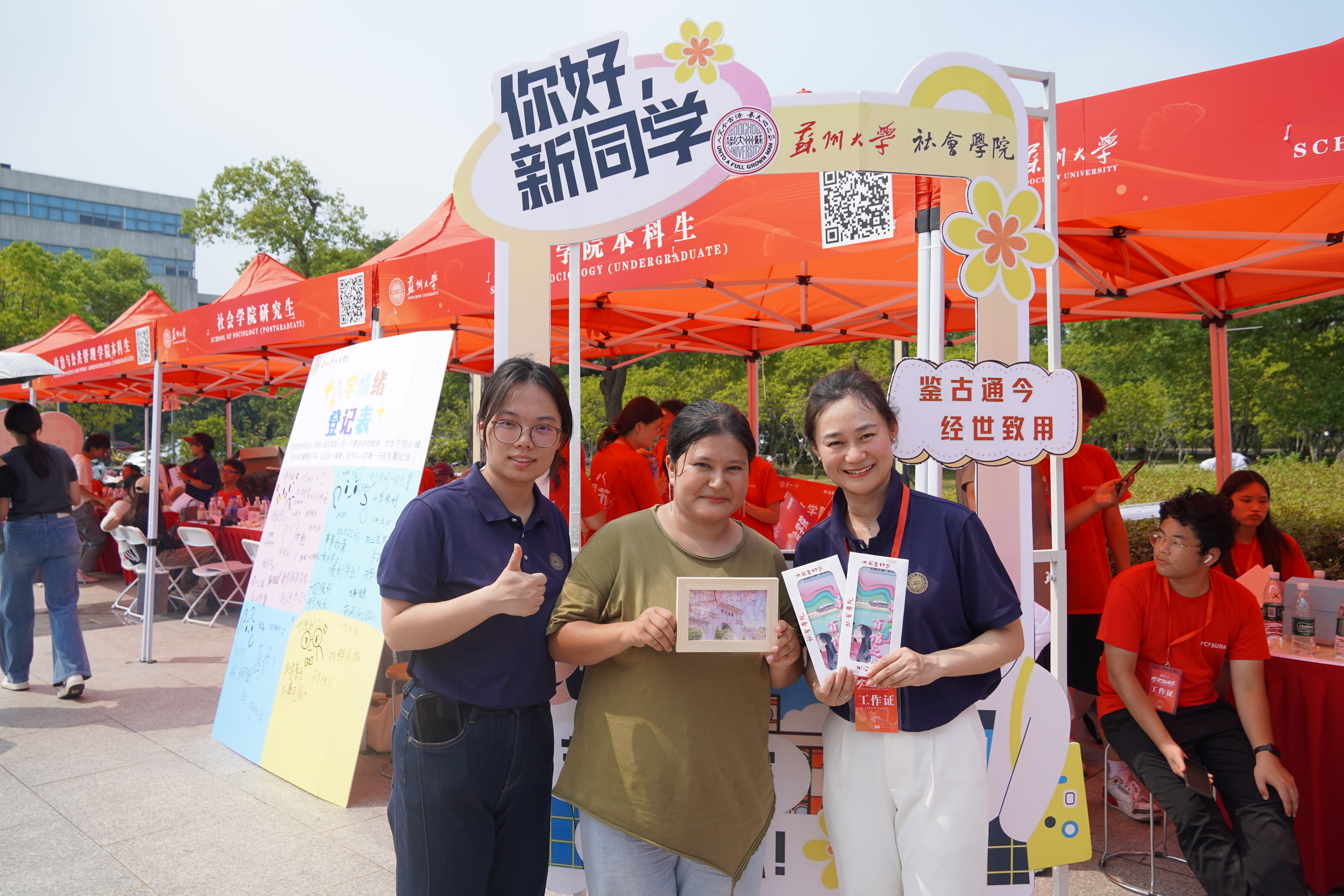 迎新现场,各学院(部)为新生们准备了琳琅满目的“见面礼”,别出心裁、诚意满满。