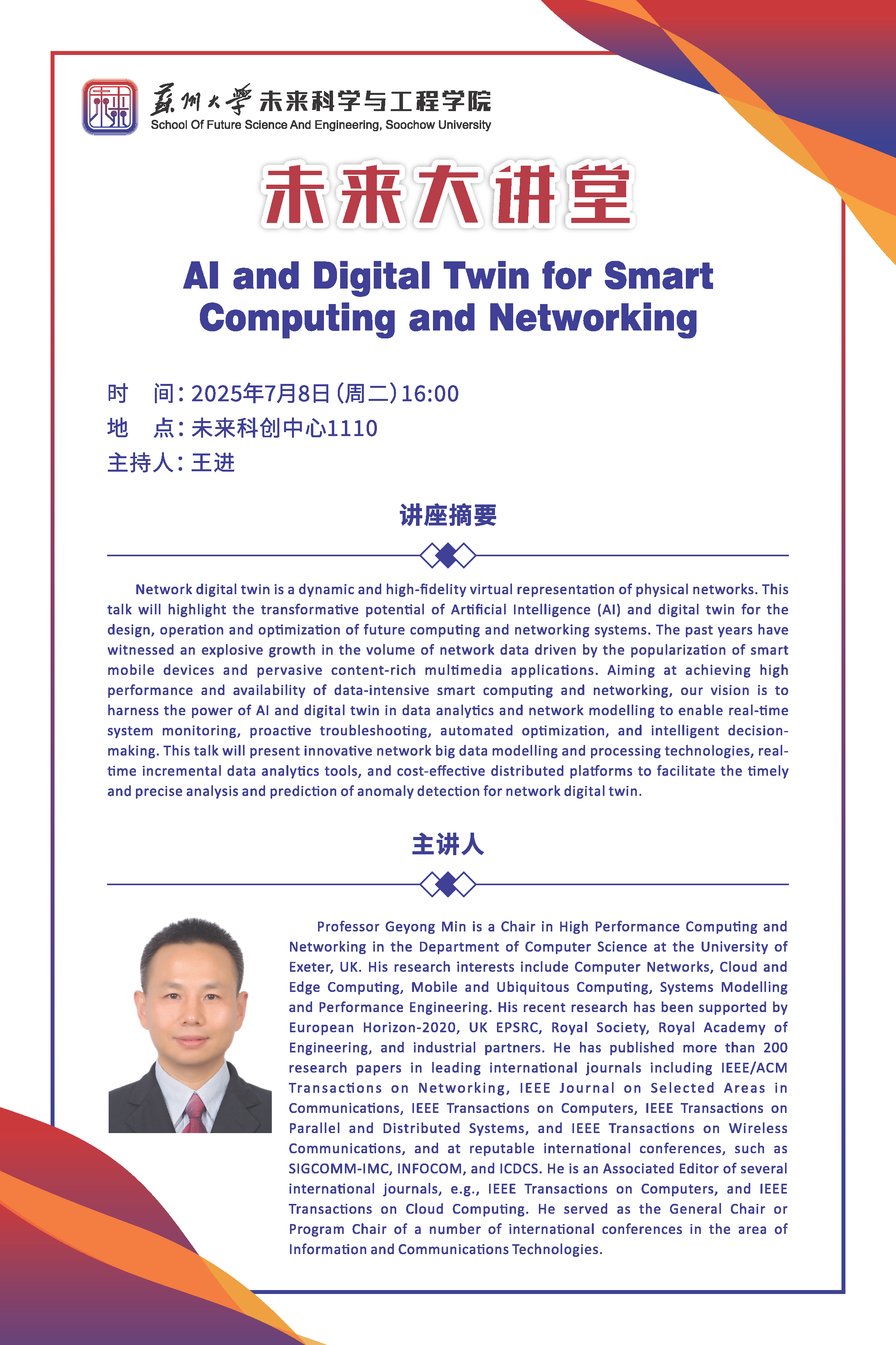 未来科学与工程学院|未来大讲堂:Al and Digital Twin for Smart Computing and Networking