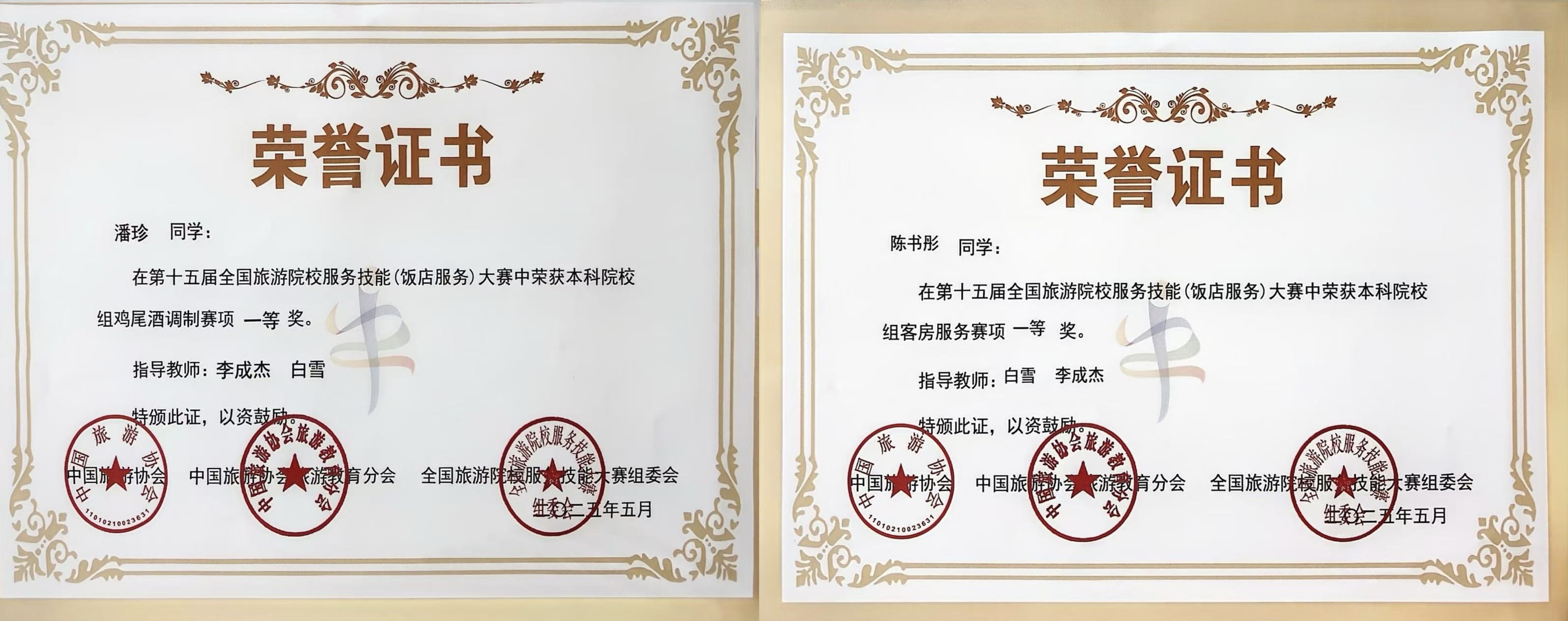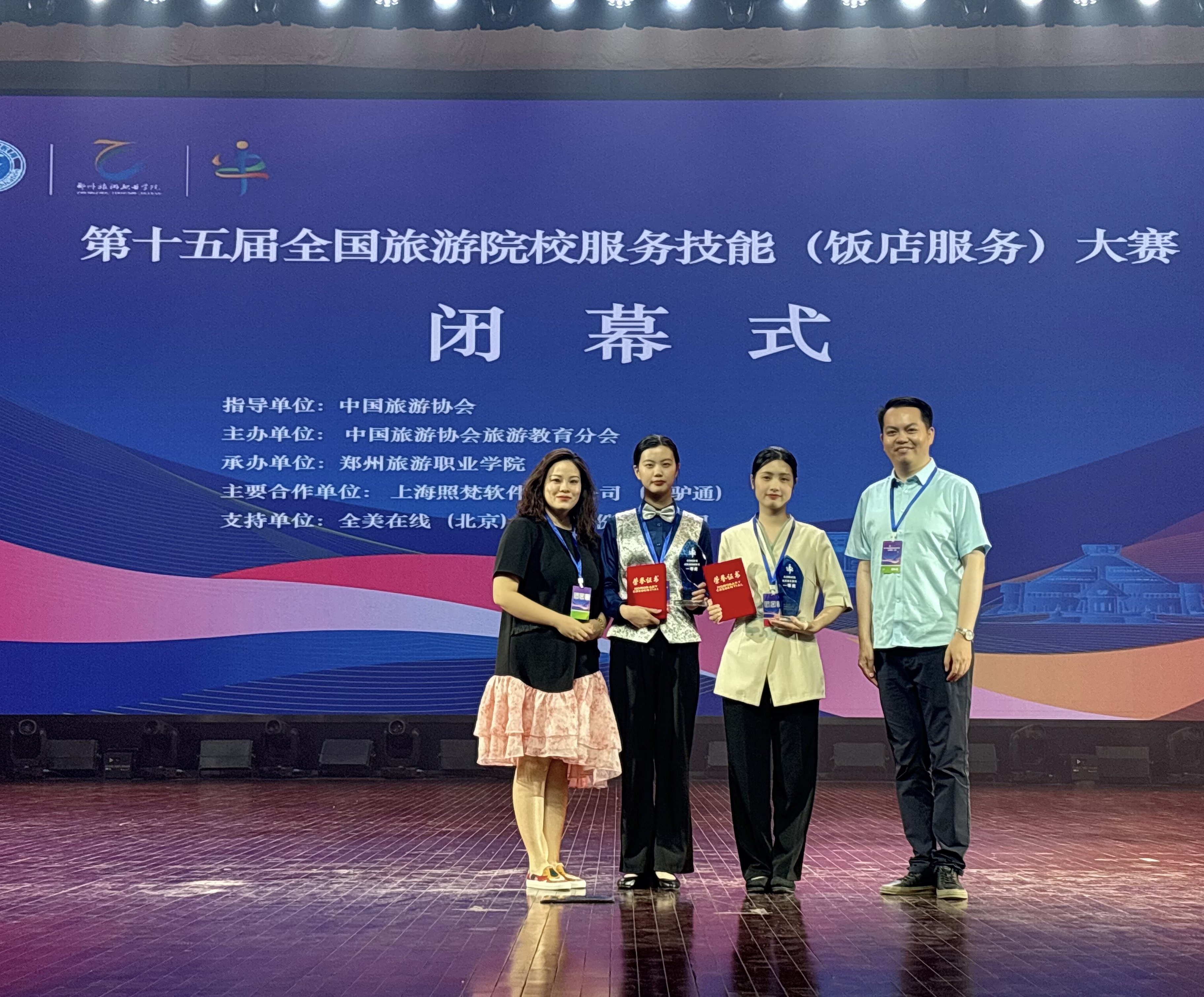 5月17日,第十五届全国旅游院校服务技能(饭店服务)大赛在郑州落幕。MK网(中国)应用技术学院酒店管理专业的两名学子在比赛中取得佳绩。其中,由李成杰老师指导的2023级酒店管理专业的潘珍获本科组鸡尾酒调制赛项一等奖,由白雪老师指导的2023级酒店管理专业的陈书彤获本科组客房服务赛项一等奖。