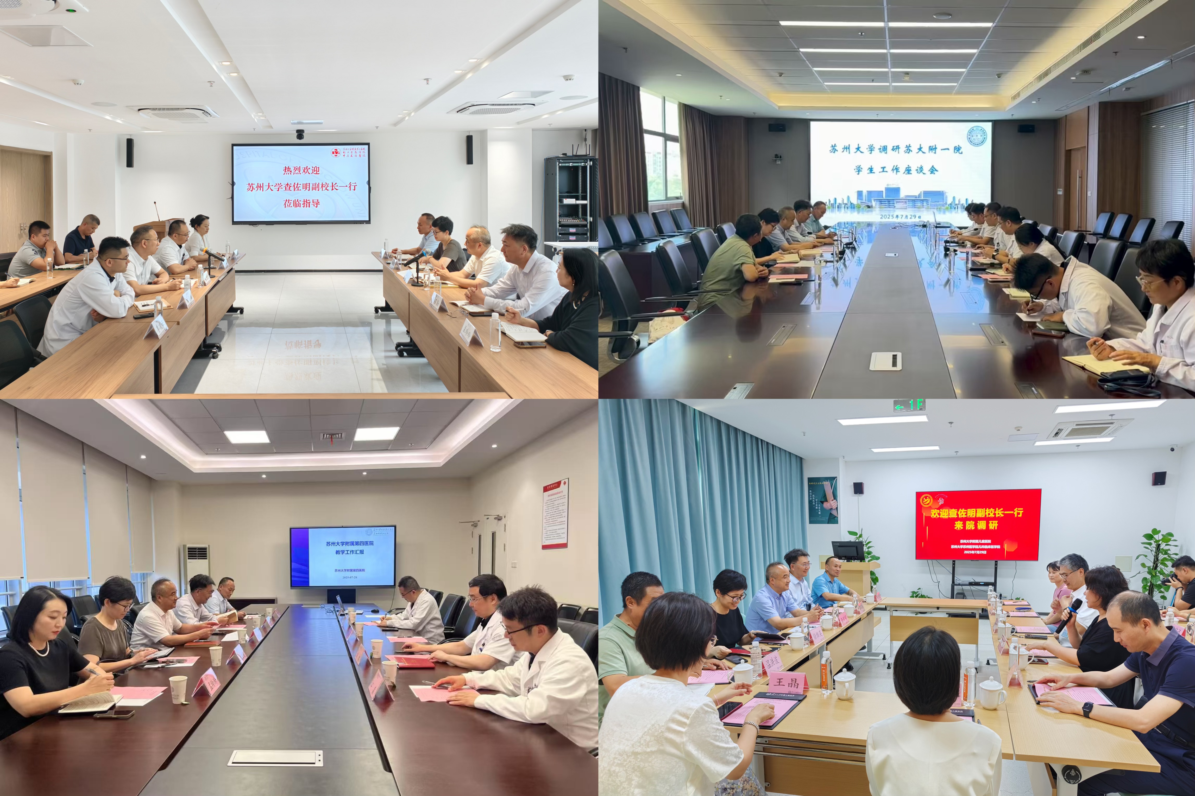 查佐明一行听取了各附属医院领导关于学生党建与思想政治工作总体汇报,与各医院(临床医学院)分管部门负责人、辅导员、班主任代表就学生日常管理、党团组织建设、心理健康教育、学生社区建设等问题深入交流,并实地察看了附属第一医院、附属儿童医院学生宿舍,了解学生生活情况。